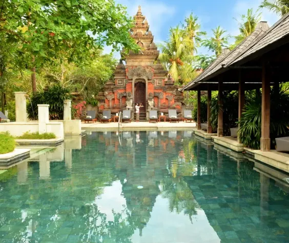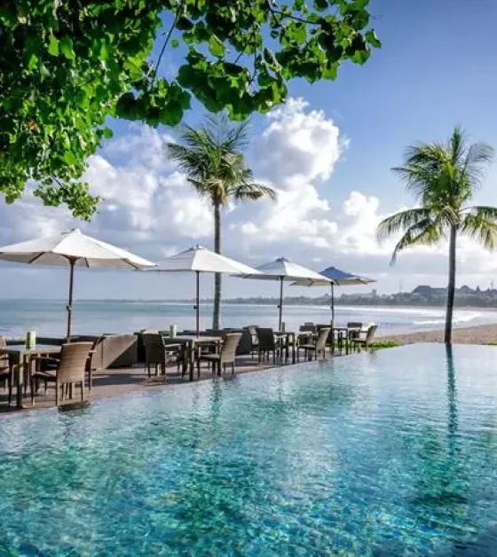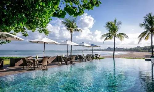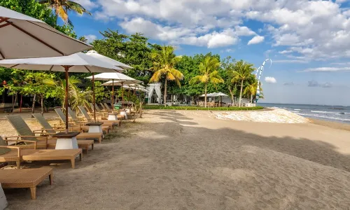 Smješten na poznatoj plaži Kuta u mjestu Tuban. Restorani i shopping centar nalaze se u neposrednoj blizini hotela, a živopisna Kuta je udaljena oko 10 minuta hoda od resorta. Zračna luka Denpasar udaljena je oko 2 km. Od sadržaja resort nudi 9 restorana i 5 barova, uključujući swim up bar i 3 bazena. Pristup Spa bazenu dozvoljen je samo odraslima. Pored glavnog bazena nalazi se i dječji bazen, dok bazen na plaži nudi predivan pogled na zalaske sunca. Usluga dadilje dostupna je na upit (uz nadoplatu). Wi fi se nalazi u zajedničkim prostorijama hotela.