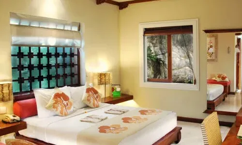 | Deluxe Club Cottage | POLUPANSION. 32 m2, opremljenost kao Deluxe Cottage. U kućici sa samo jedim katom ili na gornjem katu kućice na dva kata. U deluxe klub uključene sljedeće usluge: pristup klupskom salonu gdje se cijeli dan (7-23) poslužuju bez alkoholna pića, led, voće i grickalice, od 15-17 sati poslužuje se popodnevni čaj s kolačima, a od 17-18 sati alkoholna pića kao što su vino, pivo i kokteli. | od 14.100,00 kn |