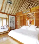Overwater Bungalow | POLUPANSION. oko 61m2, bungalov se nalazi na stupovima na vodi s izravnim pristupom moru i staklenim dnom za promatranje podvodnog svijeta. Opremljenost kao Garden Pool Bungalow, nema vlastiti baze, ima kadu i prostor za sunčanje s pogledom na lagunu. | od 50.200,00 kn |