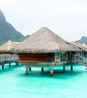 Pošalji upitNa dijelu Bora Bore pod nazivom Motu Piti Aau, što u prijevodu znači „Dva srca“ nalazi se ovaj predivni resort. Resort je smješten između dvije lagune i oceana, s predivnim pogledom na planinu Otemanu, direktno na pješčanoj plaži. Zračna luka na Bora Bori je udaljena otprilike 20 minuta, a do resorta se može doći brodom. Aerodrom Papeete je udaljen otprilike 50 minuta unutarnjim letom. Ovaj ekskluzivni resort dizajniran je od strane lokalnih dizajnera u modernom stilu s polinezijskim utjecajem. Za resort koji je gotovo u cijelosti sastavljen od bungalova na vodi može se reći da je pravi raj na zemlji. Od sadržaja nudi recepciju, predvorje, 3 restorana, jedan od njih direktno na privatnoj plaži, 2 bara, lounge, bazen s pogledom na lagunu, ležaljke i suncobrane, butik, i suvenirnicu. Između InterContinental Bora Bora Resort and Thalasso Spa i InterContinental Bora Bora Le Moana Resorta vozi shuttle (do 16:00 h besplatno, a kasnije se naplaćuje). Gosti mogu koristiti sadržaje oba resorta.