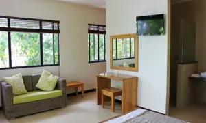 | Standard | POLUPANSION, oko 32 m2, sve sobe su moderne, sa svijetlim bojama i kreolskim utjecajem uređene, imaju ugodni kutak za sjedenje, kupaonu s tušem, WC, sušilom za kosu, telefon, TV, besplatni pristup internetu Wireless LAN, klima uređaj, ventilator, mini hladnjak, aparatu za kavu/čaj , sef, balkon, pogled na more | od 11.700,00 kn |