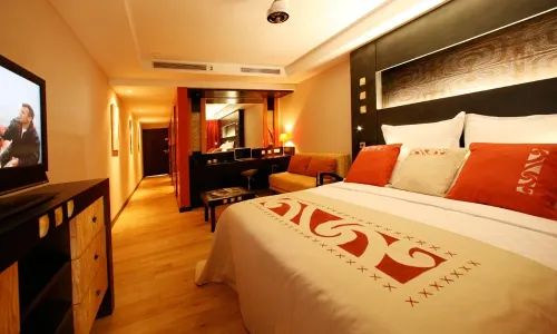 | Standard | POLUPANSION - oko 30 m2, u glavnoj zgradi, djelomično na strani glavne ulice pa je idealna za kratke posjete, uređeno u polinezijskom stilu i modernom, kupaona s kadom/WC, odvojeni tuš, sušilo za kosu, TV (LCD), DVD uređaj, telefon, pristup internetu, pegla, klima uređaj, stropni ventilator, minibar, aparat za kavu/čaj, sef | od 36,200.00 kn |