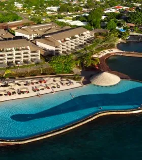 Pošalji upitHotel se nalazi u Punaauia regiji, na sjeverozapadu Tahitija. Udaljenost od zračne luke Papeete je oko 8 km. Moderni resort je na temelju svoje blizine trgovačkog centra i opremljenosti apartmana i studija izvaredan za one koji se vole sami opskrbiti. Hotel svojim gostima nudi recepciju, lobby s WLAN-om, restoran, bar na bazenu, preljevni bazen koji seže do mora i nudi prekrasan pogled na susjedni otok Moorea, salon ljepote, spa (naknada).