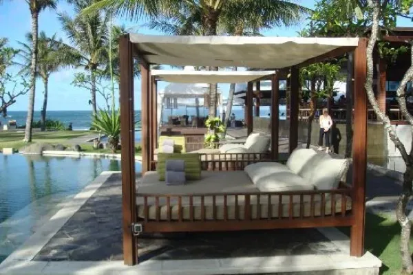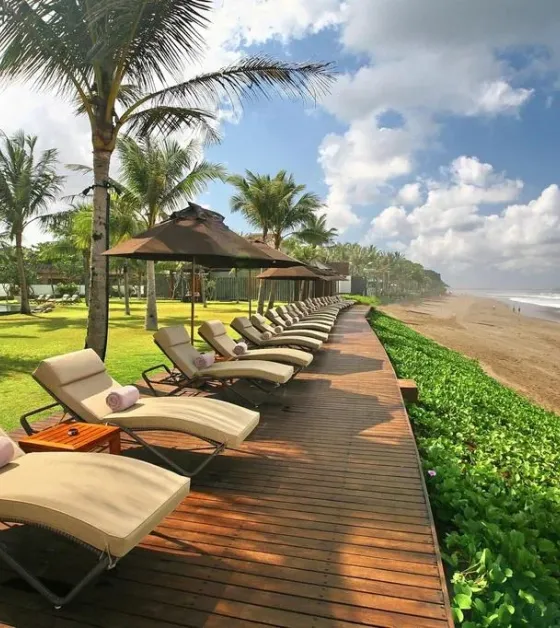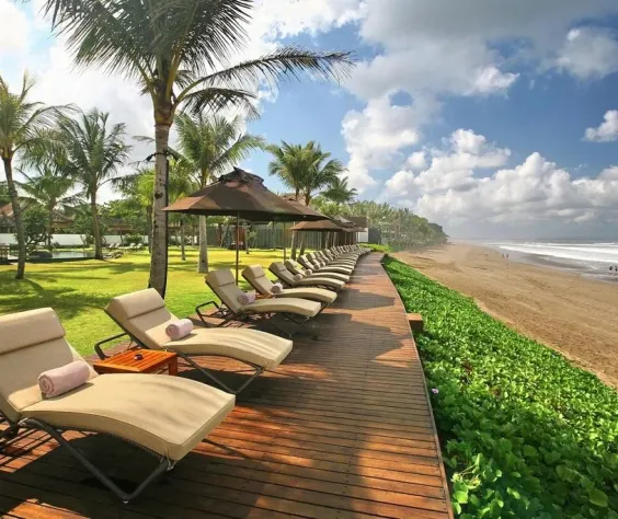 Hotel se nalazi na mirnom dijelu poznate Seminyak plaže. Zračna luka Denpasar udaljena je 10 km. Hotelski bus vozi do Seminyaka i okolnih mjesta (na upit). Resort je podijeljen na 2 dijela, Glavno krilo i Royal Courtyard krilo. Glavno krilo nalazi se na plaži, tu se nalaze vile s bazenom i Royal Pavilion vile, bazen s ležaljkama i suncobranima, restoran The Breeze i Spa (dodatno se naplaćuje). Na drugoj strani resorta oko 5 minuta hoda od Glavnog krila, nalazi se Royal Courtyard Krilo s pripadajućim vilama. Ovaj dio ima bazen, restoran i moderni fitnes centar. Cijeli resort je pokriven wi fi Internetom. Gostima je na raspolaganju usluga batlera.