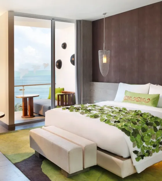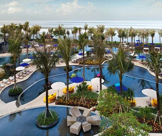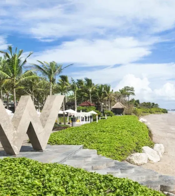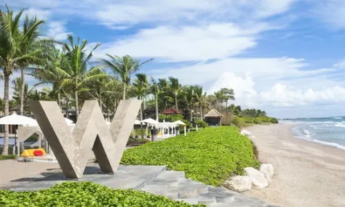 Resort se nalazi direktno na popularnoj pješčanoj plaži Seminyak. Glavna zračna luka Denpasar udaljena je oko 10 km. U ovom modernom resortu naići ćete na spoj dobrog dizajna, muzike i zabave. Od hotelskog sadržaja tu su 2 restorana. U restoranu Fire se nalazi otvorena kuhinja, a u restoranu Starfish Bloo servira se azijska hrana. Woobar je popularan bar gdje se poslužuju kokteli, a muziku puštaju DJ-i. U W Lounge baru je opuštena atmosfera, dok u Ice Baru možete popiti jako hladno piće. U resortu se također nalazi veliki bazen s dostupnim ležaljkama i suncobranima. Cijeli resort je pokriven s wi fi Internetom.